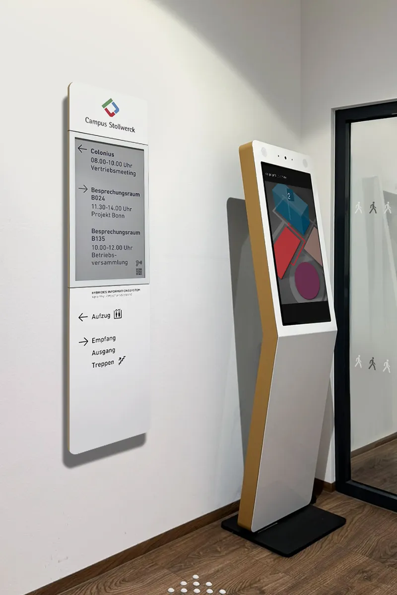 Ergänzen Sie die digitale Wegeleitung mit einem digitalen Besucherempfang und digitalen Raumschildern und sorgen Sie so für eine umfassende Wegeleitung von Anfang bis Ende.